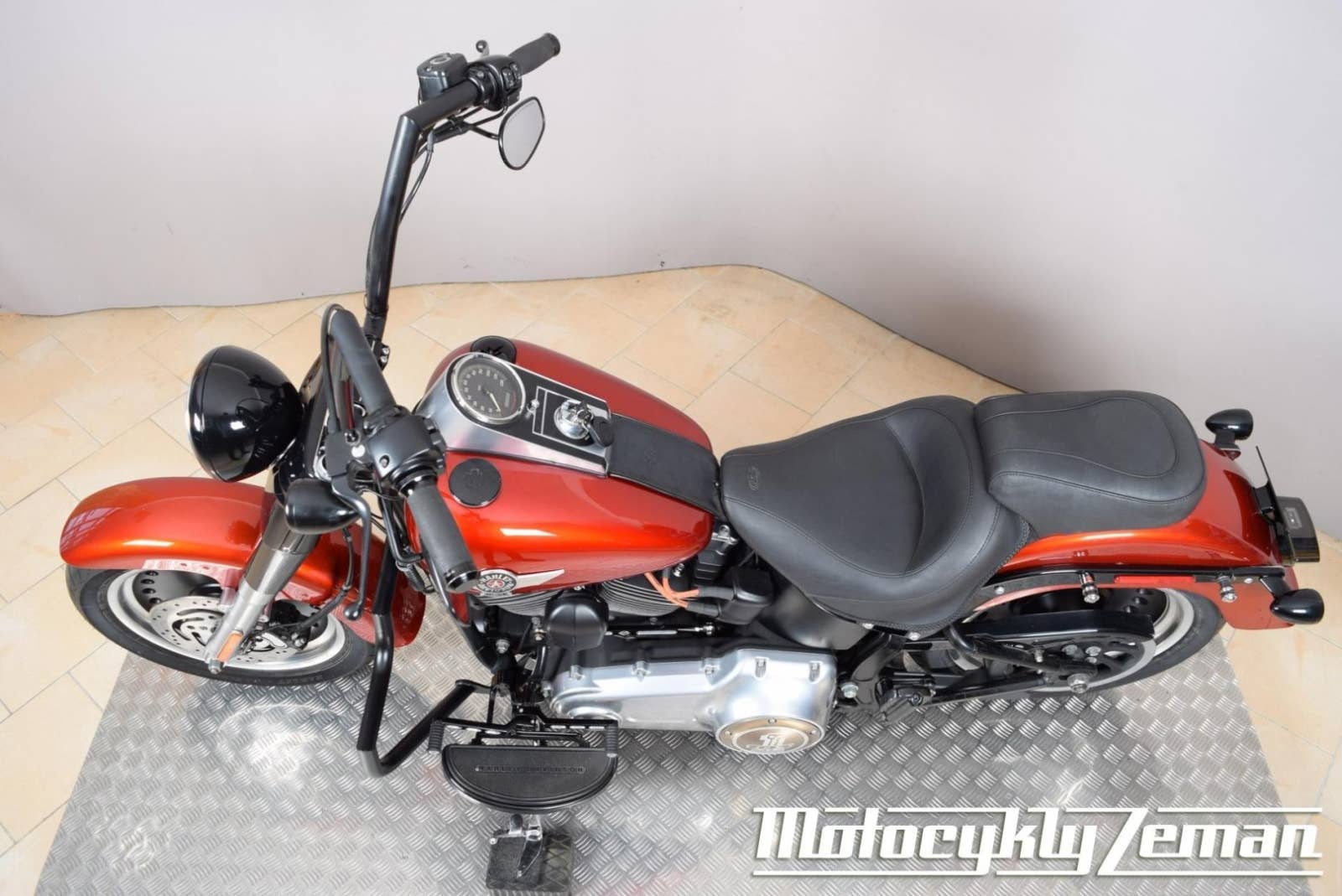 v bezvadném stavu, nehavarovaný - doložíme, s ABS, doplňky: 12¨ řídítka, orig kožené rychloupínací brašny, sundavací opěrka, padací rám, LED světlo, blinkry, řadička, brzdová páka, víčka motoru, výfuky Vance&Hines Big Radius, sání Vance&Hines, pohodlné sedlo Mustang, v krásné červeno-oranžové perleti, málo jetý - doložíme, CZ TP, vyjímky zapsány, odpočet DPH, moc pěkný. Detailní foto na www.zemoto.cz